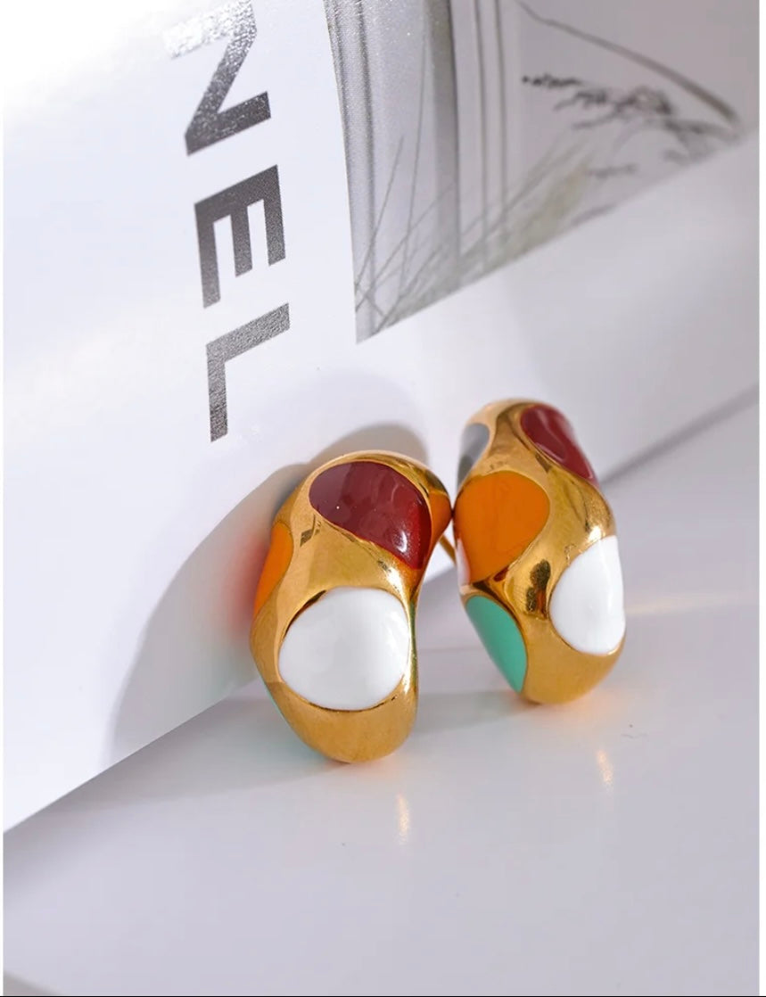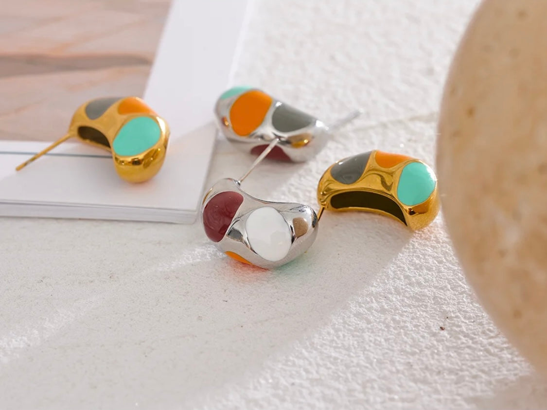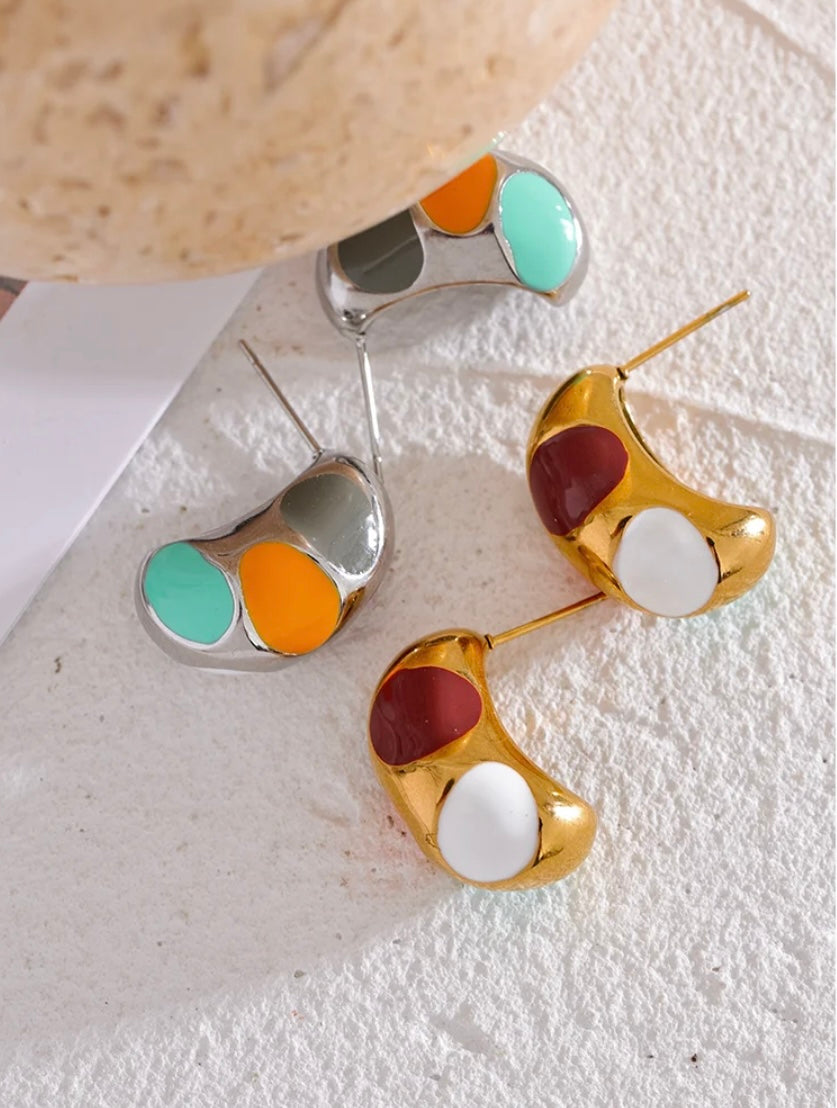 Colorful enamel dots make the Biscayne Earring striking. Available in gold and silver