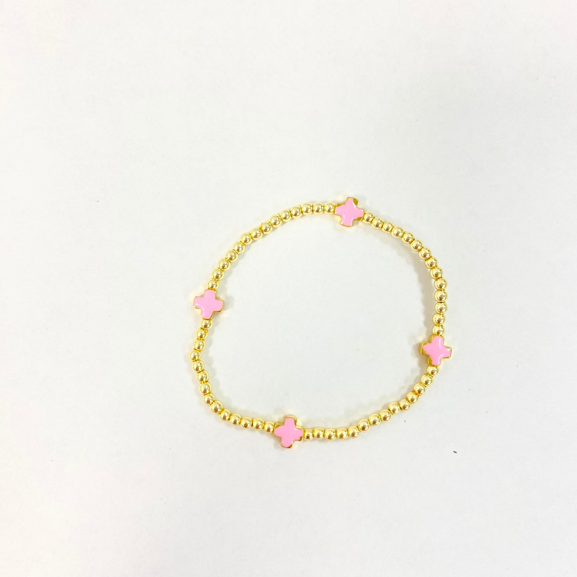 The Coastal Kids Lucy Cross Bracelet is the perfect addition to your tween's beaded stack! Available in 2 sizes : 5.5" and 6". Available colors pink, white, blue, purple
