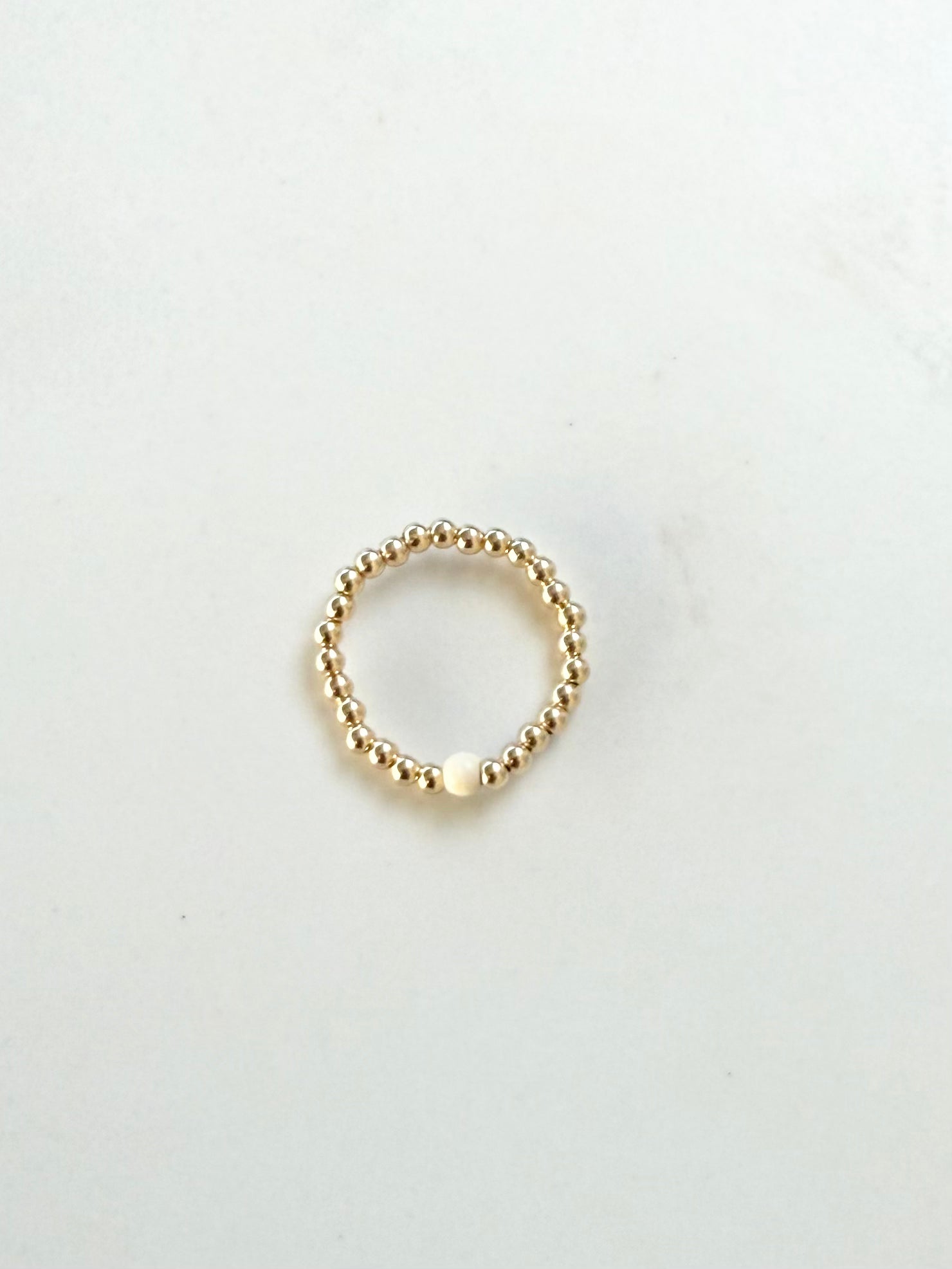 The Coconut Ring is designed with 2.5mm gold-filled beads and one coconut cream bead. Stacks beautifully with any of the Gold Coast Ring Collection or perfectly worn by itself for a minimalist look. Sizes 4-8