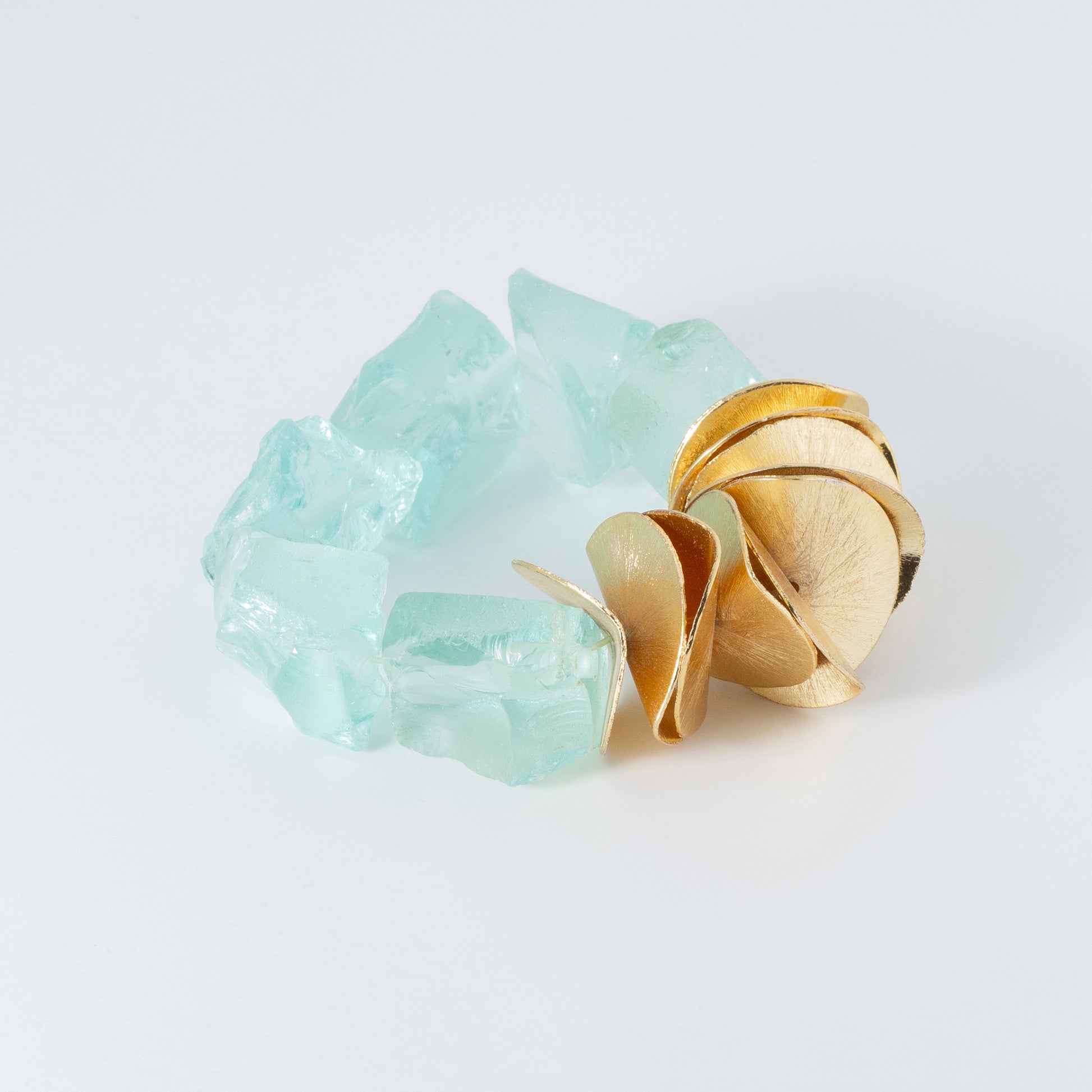 Our Cote d'Ivorie Collection is enviably chic, and impeccably luxurious. These beautiful raw-cut aquamarine stones and bold, gold discs create a statement piece with endless possibilities. From a chic resort look to an elegant evening dinner, let your wild imagination of individual style echo! Create a dramatic combo when paired with the Gold Horn Bracelet!