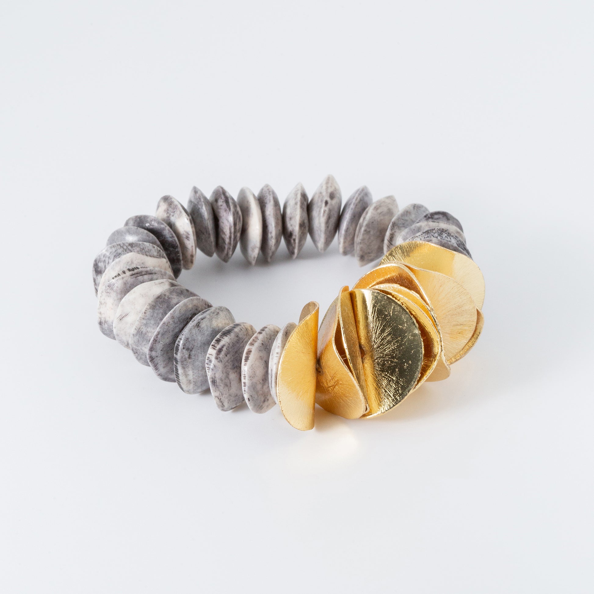 Our Cote d'Ivorie Collection is enviably chic, and impeccably luxurious. These beautifully hand-painted beads and bold, gold discs create a statement piece with endless possibilities.