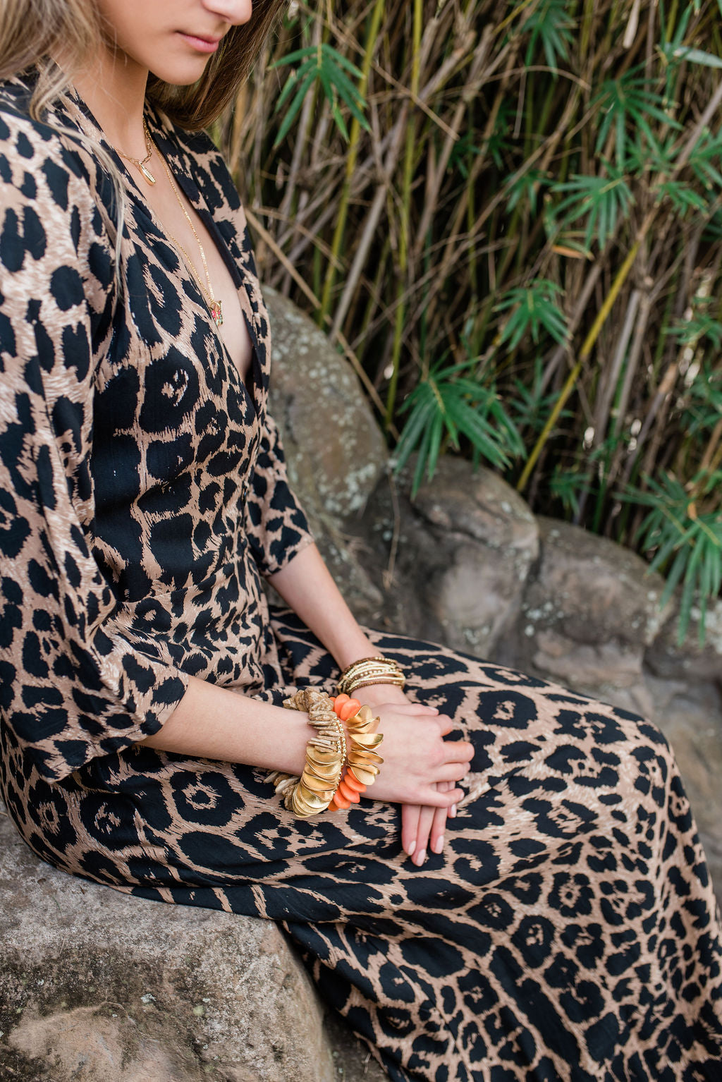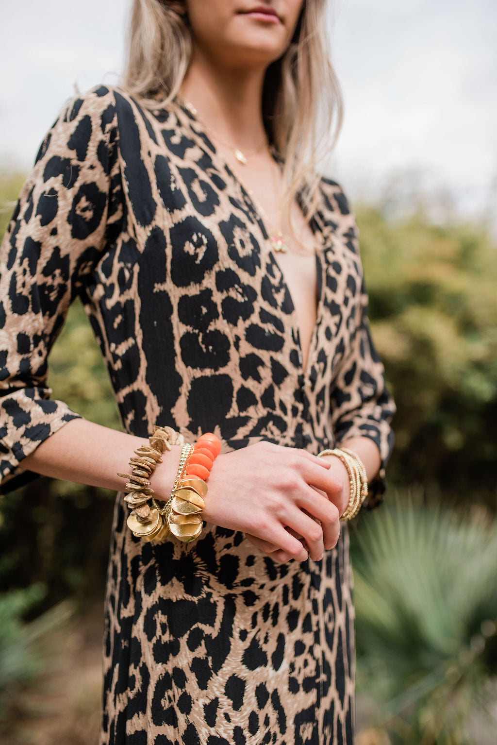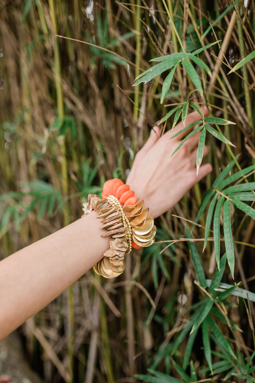 Our Cote d'Ivorie Collection is enviably chic, and impeccably luxurious. These beautifully hand-painted beads and bold, gold discs create a statement piece with endless possibilities. From a chic resort look to an elegant, evening dinner, let your wild imagination of individual style echo! Create a dramatic combo when paired with the Gold Horn Bracelet!