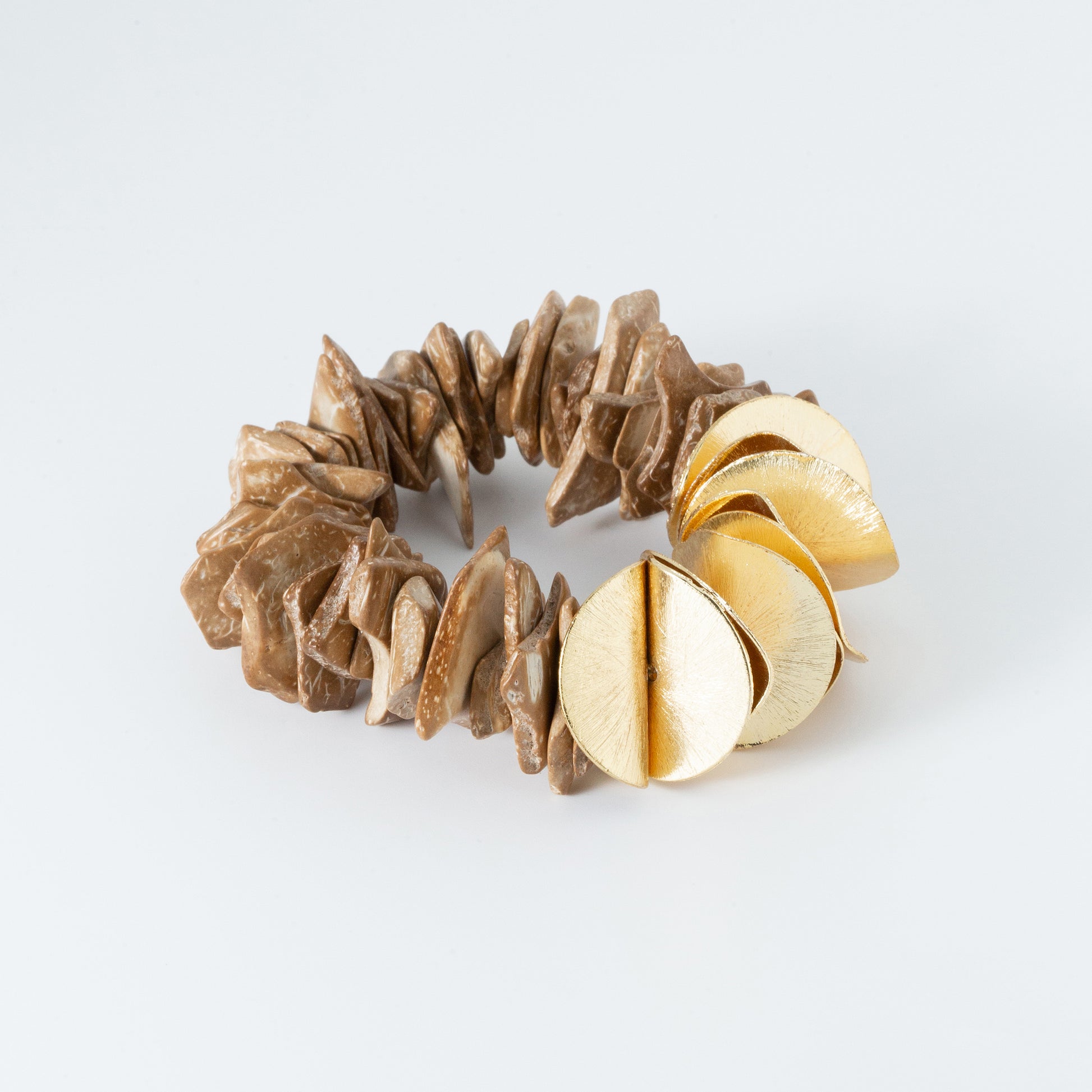 Our Cote d'Ivorie Collection is enviably chic, and impeccably luxurious. These beautifully hand-painted beads and bold, gold discs create a statement piece with endless possibilities. From a chic resort look to an elegant, evening dinner, let your wild imagination of individual style echo! Create a dramatic combo when paired with the Gold Horn Bracelet!