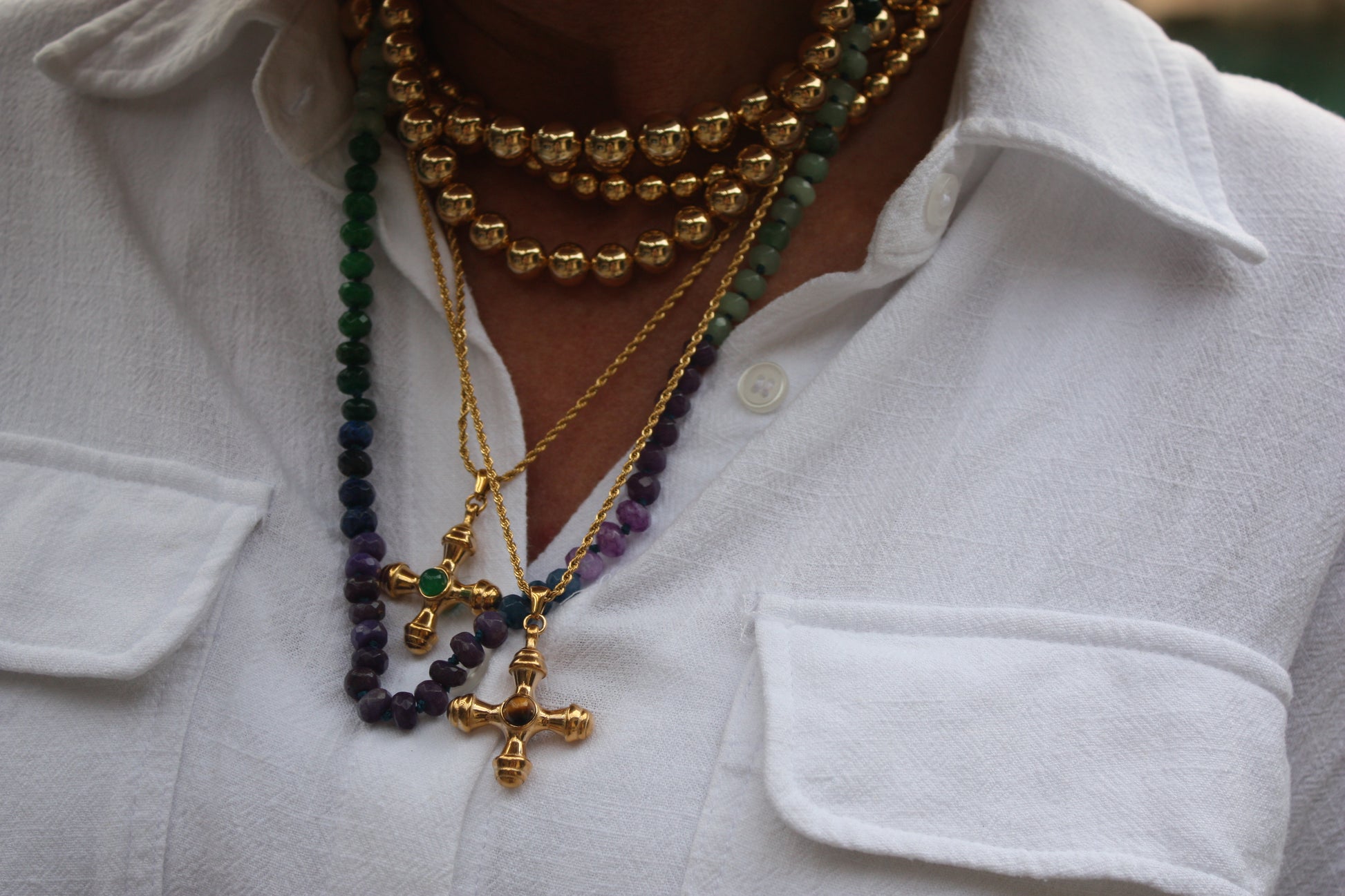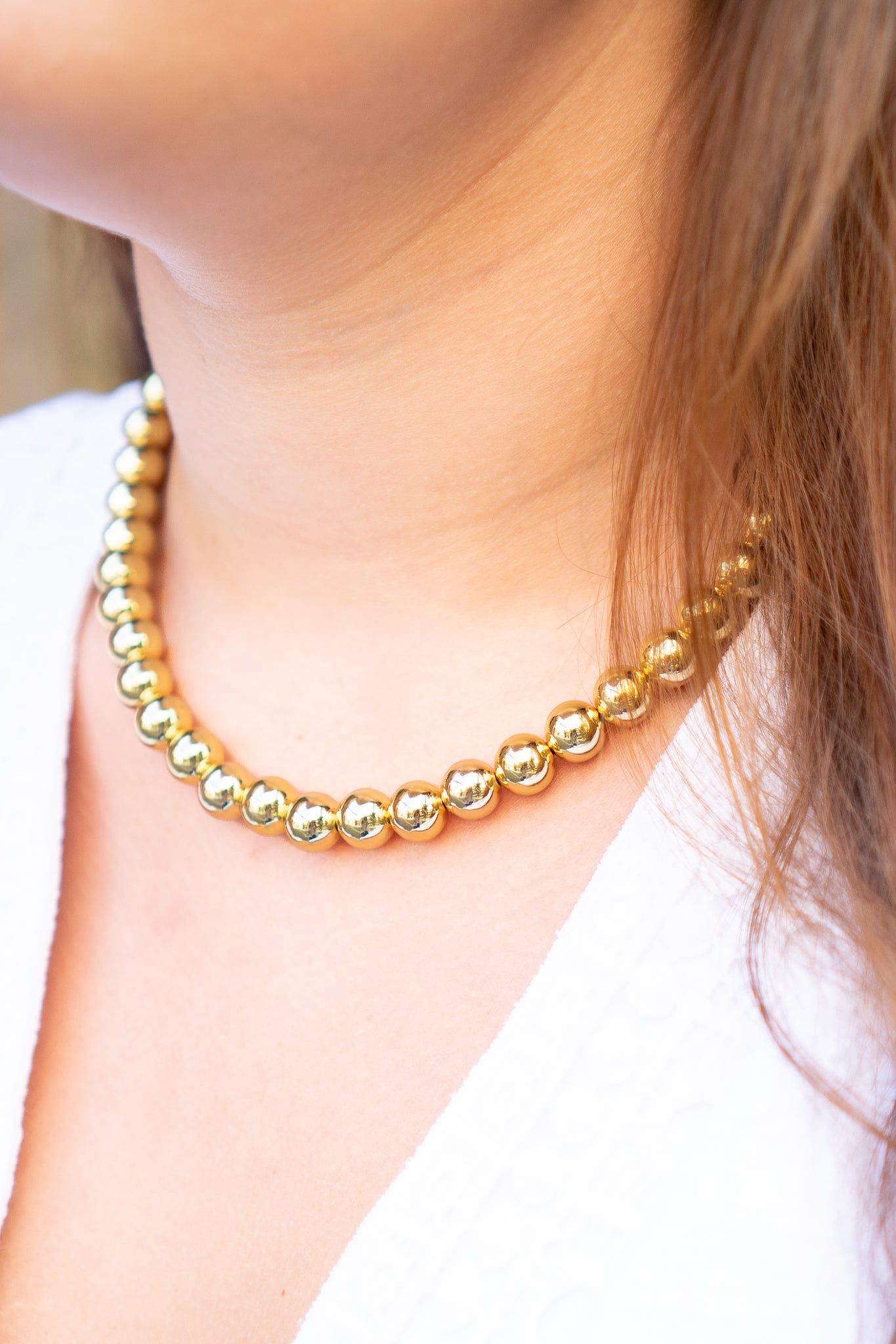 Go golden with these gold chunky beaded necklaces. Perfect to layer with our colorful Clearwater Beaded Necklaces or Cabana Necklaces. 18k gold plated