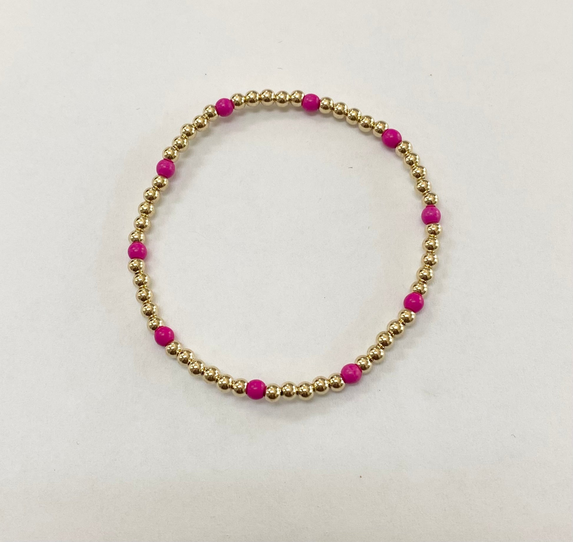 The NEW GOLD COAST TIDE bracelet is the perfect bracelet to add just a pop of color to any stack! Made with 3mm 14k gold filled beads and pairs perfectly with any of our new Gold Coast bracelets!