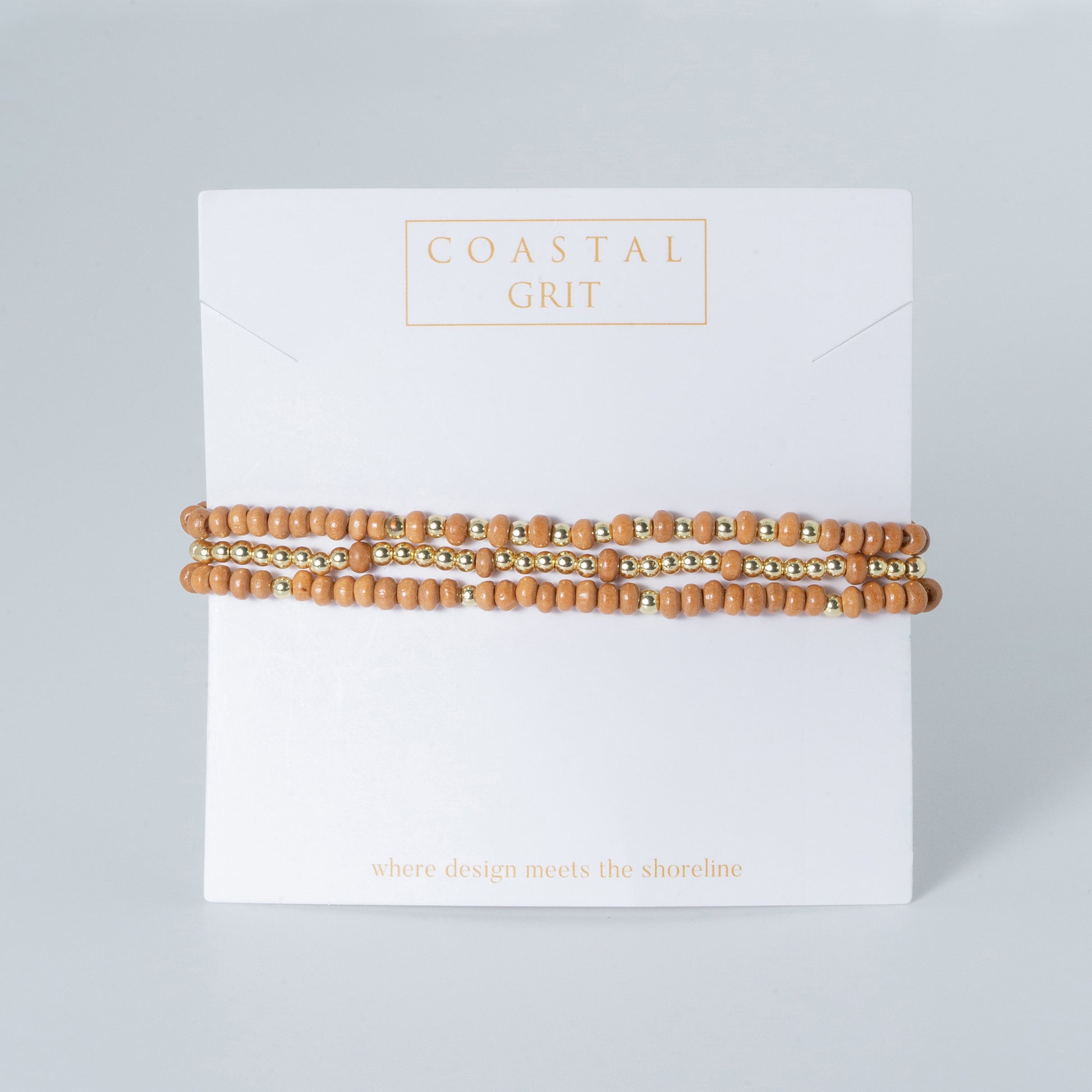 Take a piece of the beach with you by embellishing your everyday look with these go-to natural sand colored bracelets!