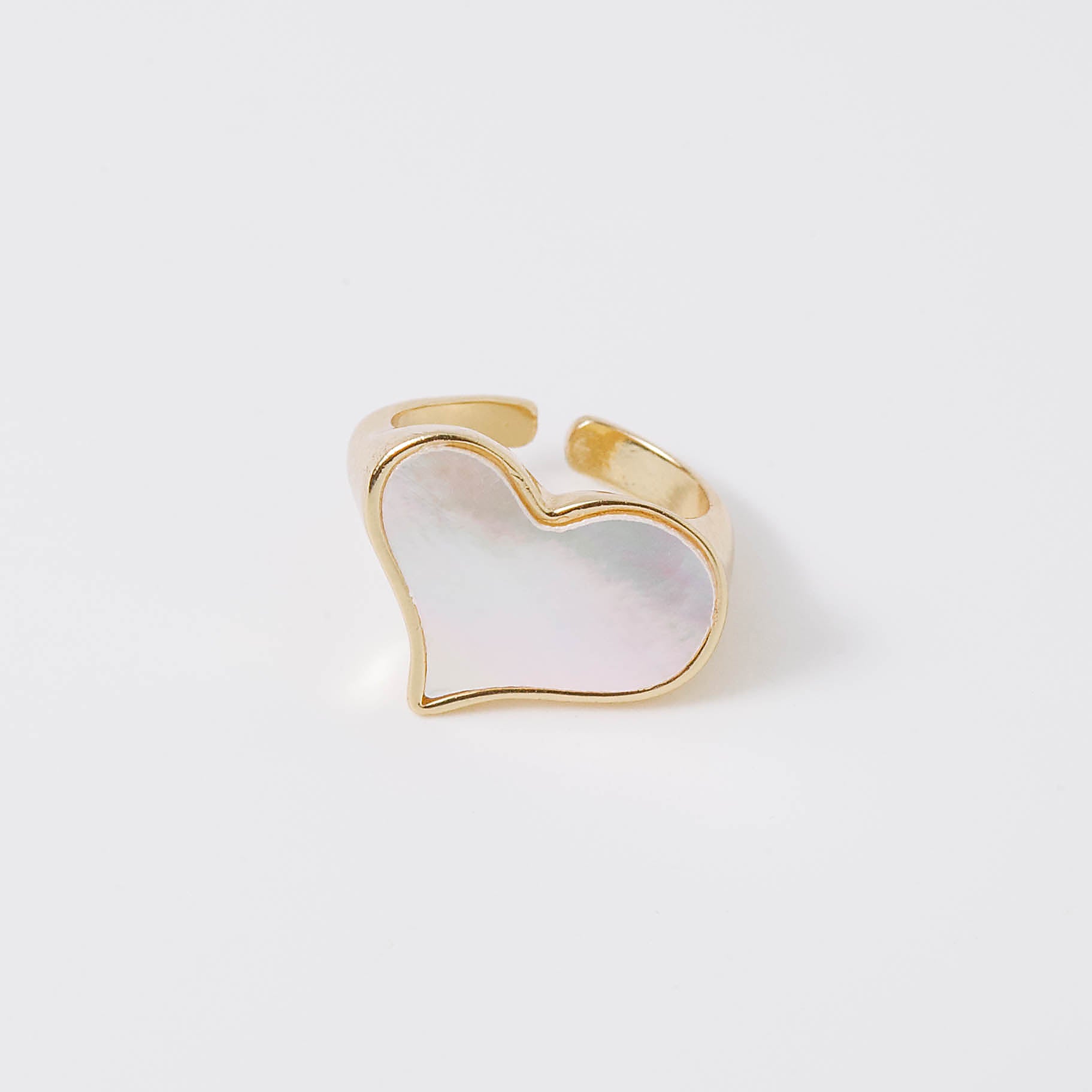 Fun and flirty, add some love to your ring collection with the beautiful Mother of Pearl Heart Ring! Pair it with the Heart of Love Necklace or Mother of Pearl Heart Locket.