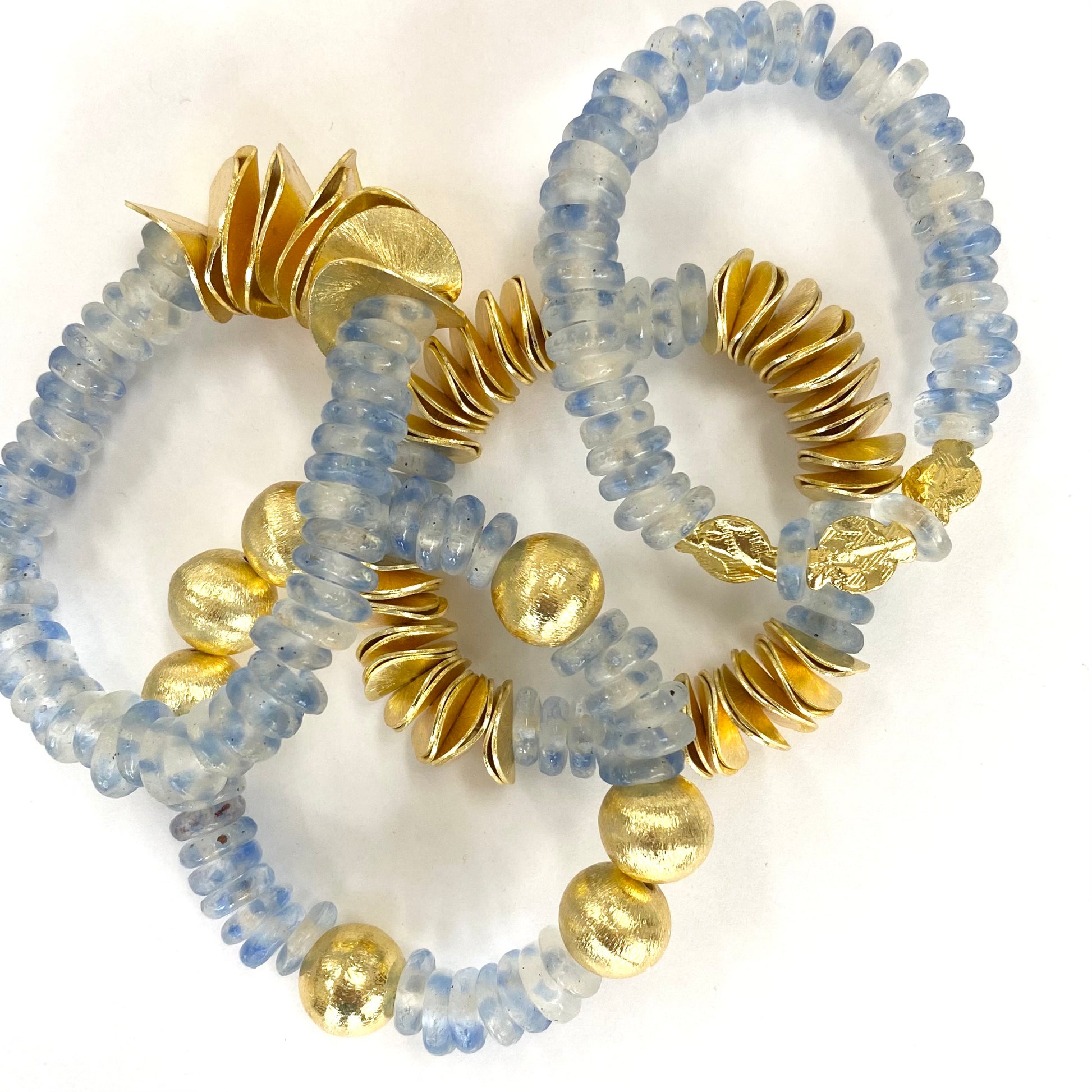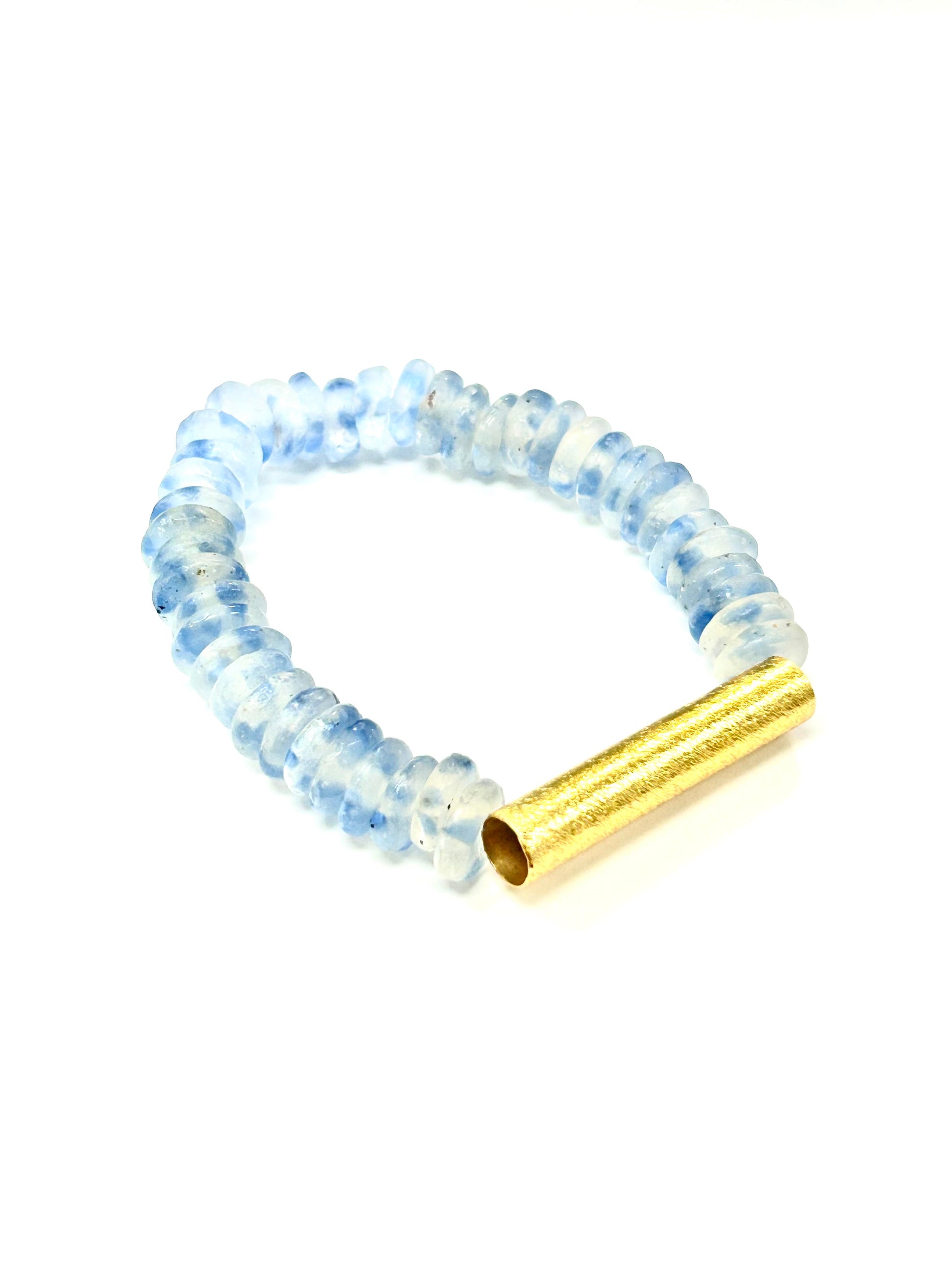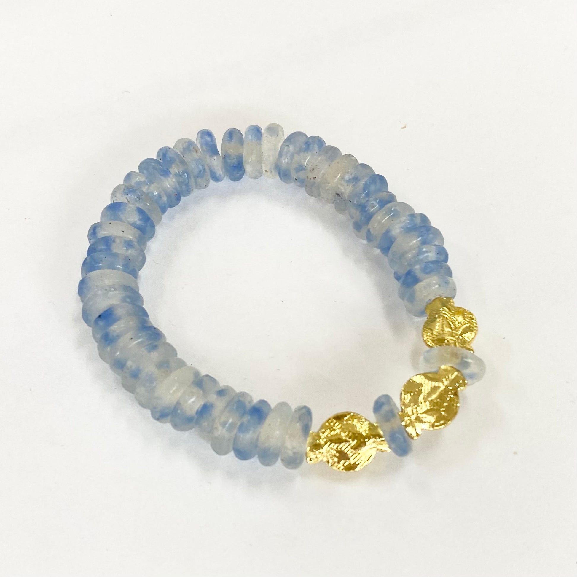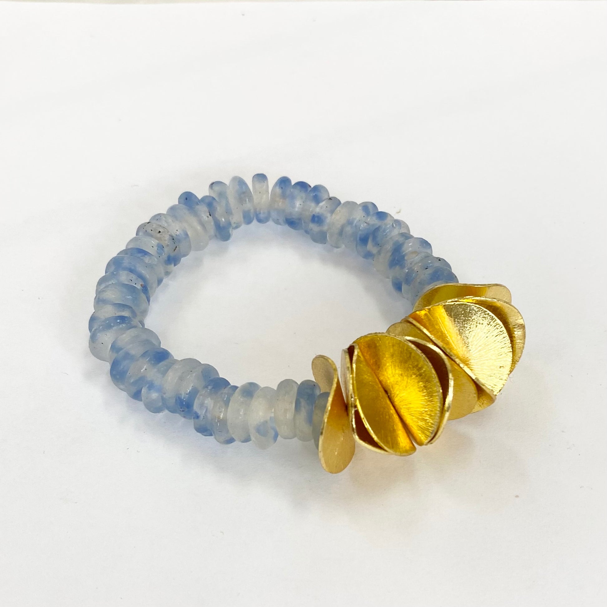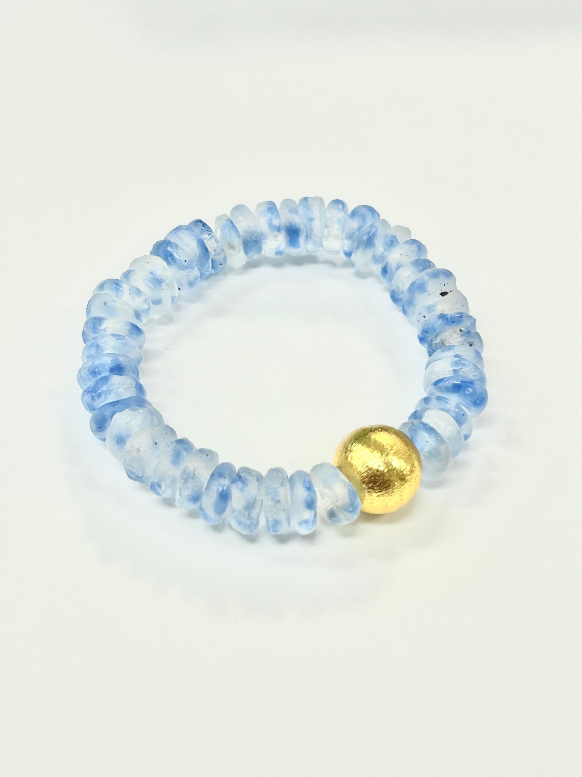 Ride the wave with our Ocean Wave Seascape bracelets, featuring recycled glass beads and brushed gold accents for a coastal vibe. Catch the eye of every beachgoer with this unique piece.