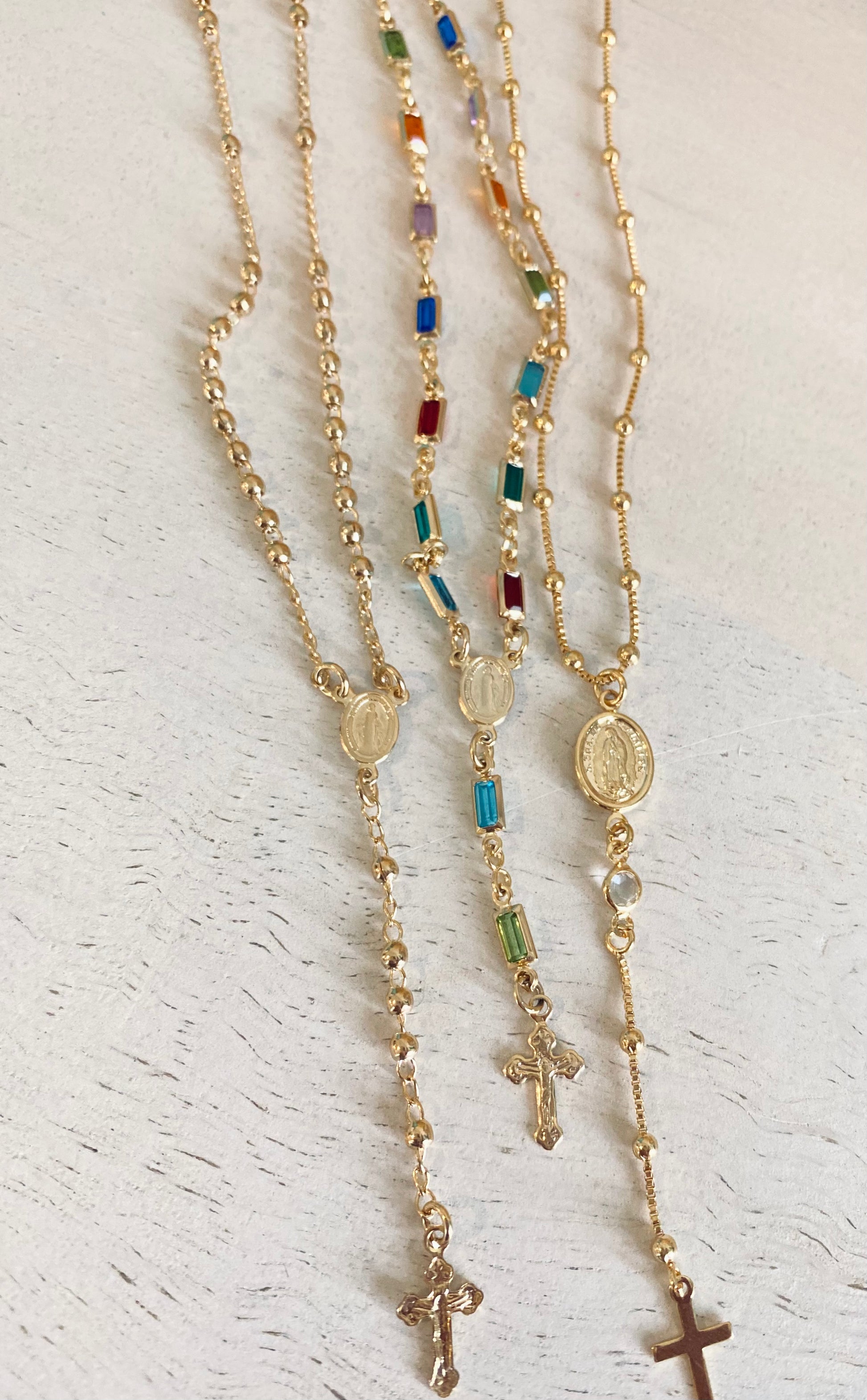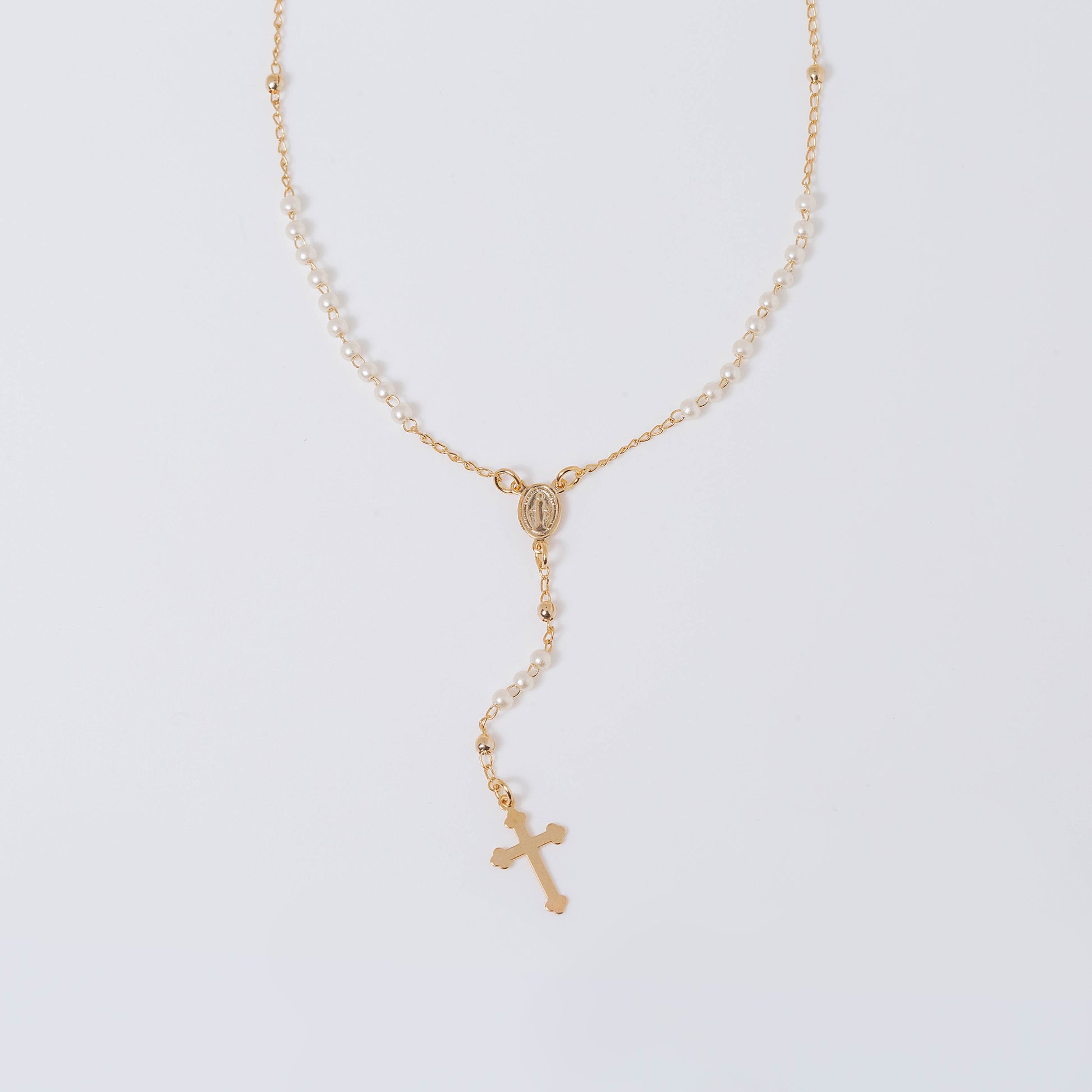A resemblance of your faith. Showcasing a Miraculous Medal of the Virgin Mary, this stylish 18k gold filled rosary necklace is perfect for layering or can be worn alone for a more formal, religious statement. Perfect gift for First Communion, Confirmation, Graduation, Mother's Day