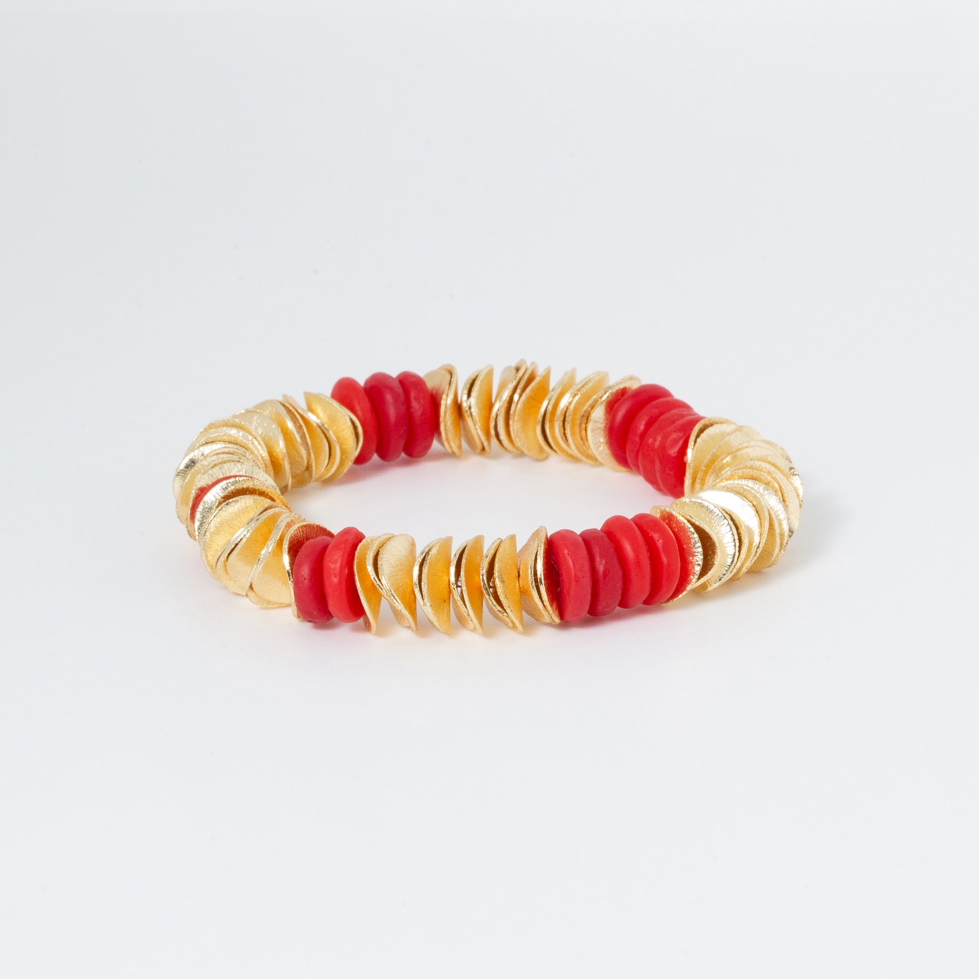 Beautiful red recycled glass beads globally sourced from Africa and hand-rolled by village woman. The imperfectly, perfect look of these stunning beads will manifest adventure and beauty into your life! Pair with any of the bracelets from Rouge Seascape Collection, including the Capri Sunset or Gold Horn Bracelet to create a stunning stack!