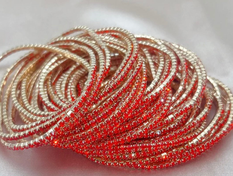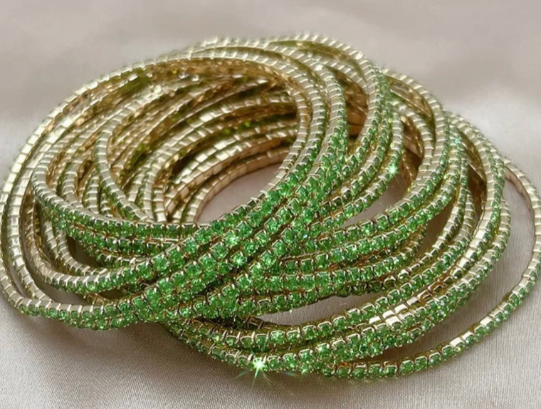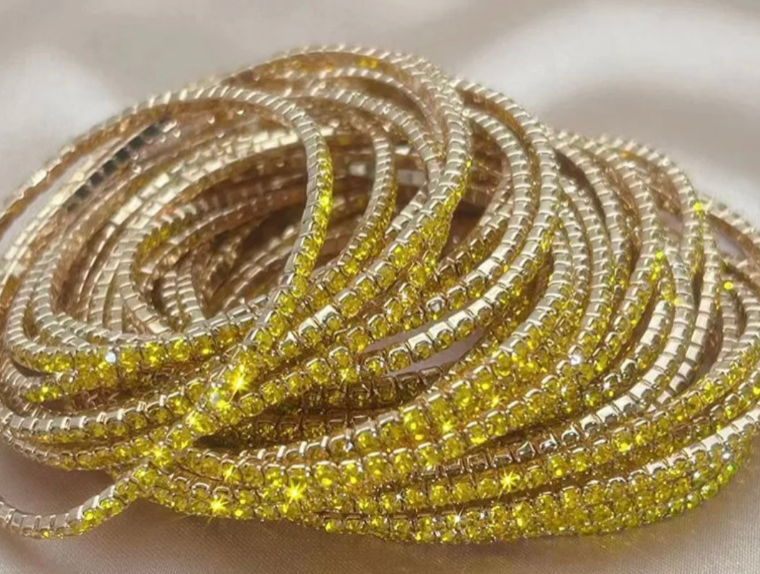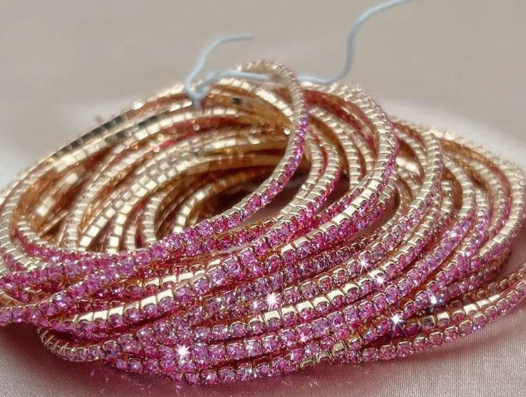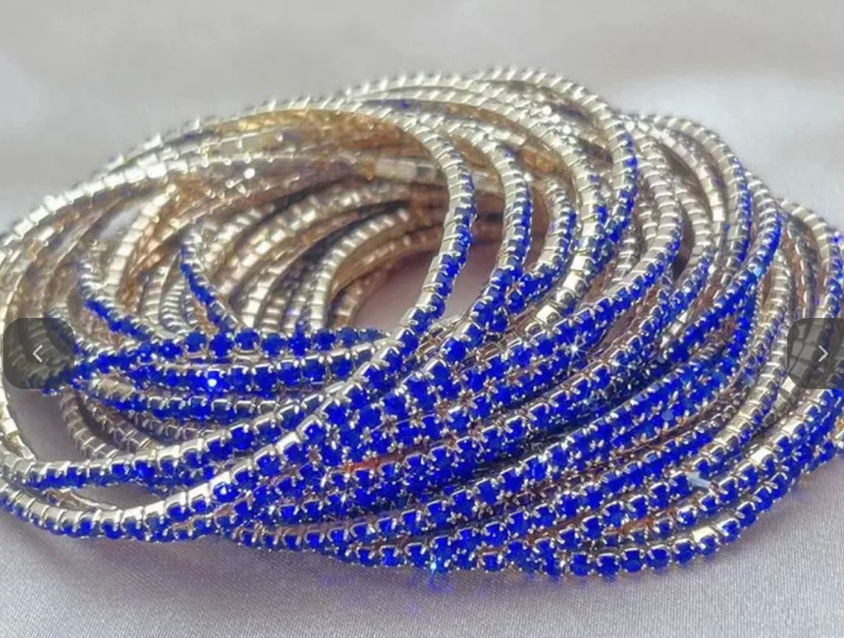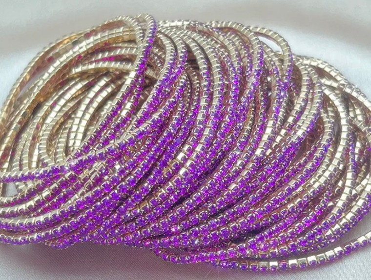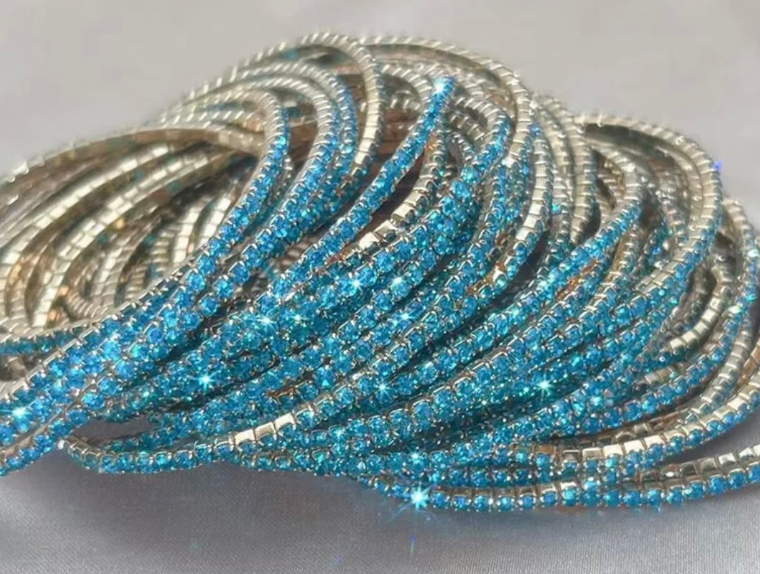 12 individual stretch tennis bracelets in vibrant colors to create a stack. Perfect to show school spirit! 6 3/4"