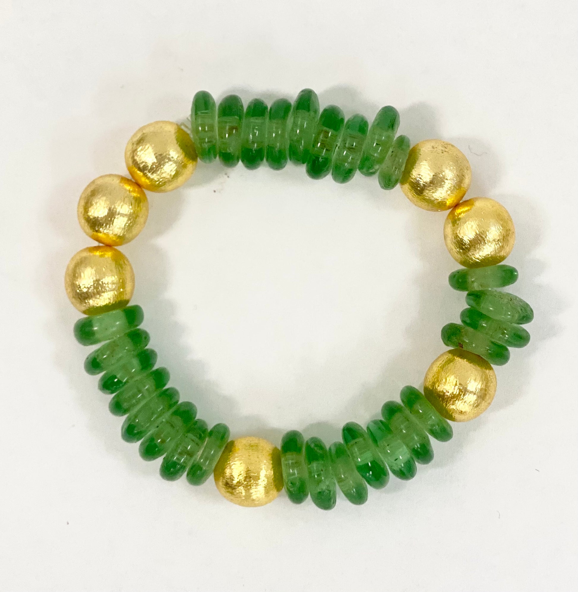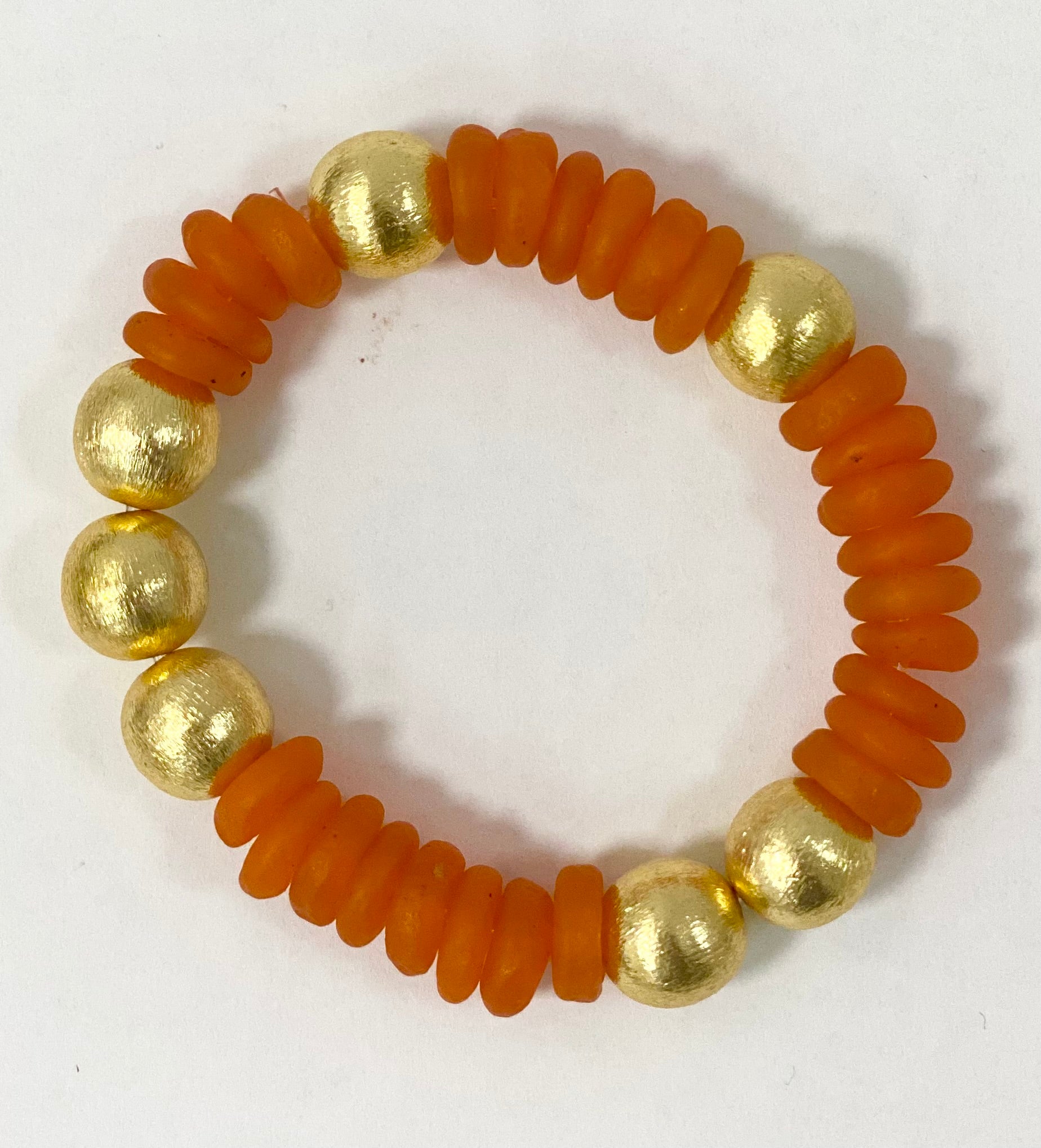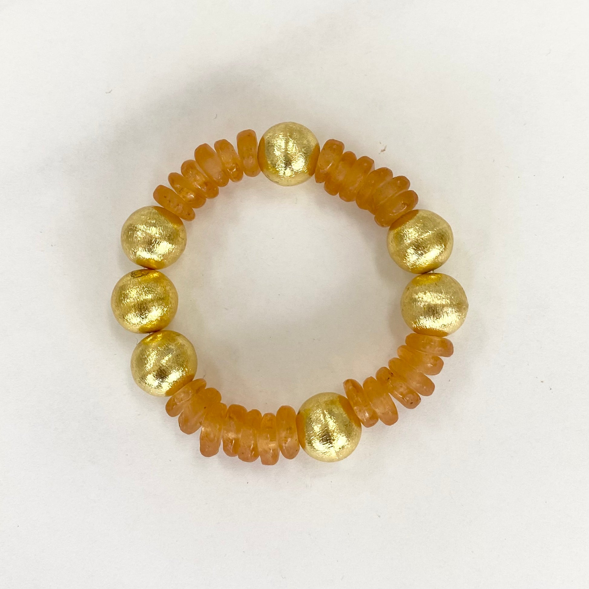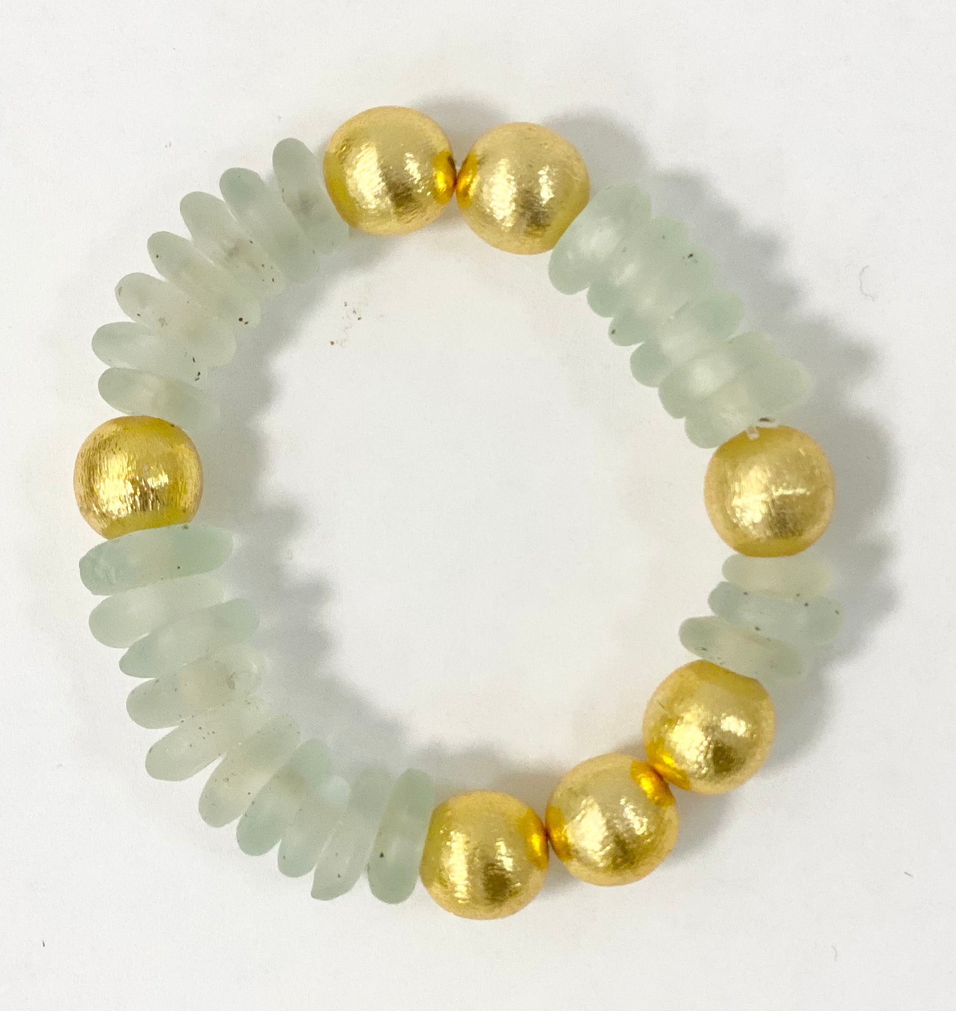 Look up and be mesmerized by the Sierra Sky Bracelet. Made with recycled glass beads and a brushed gold balls, this bracelet channels the beauty of the open sky. Its unique design will add a touch of whimsy to any outfit.