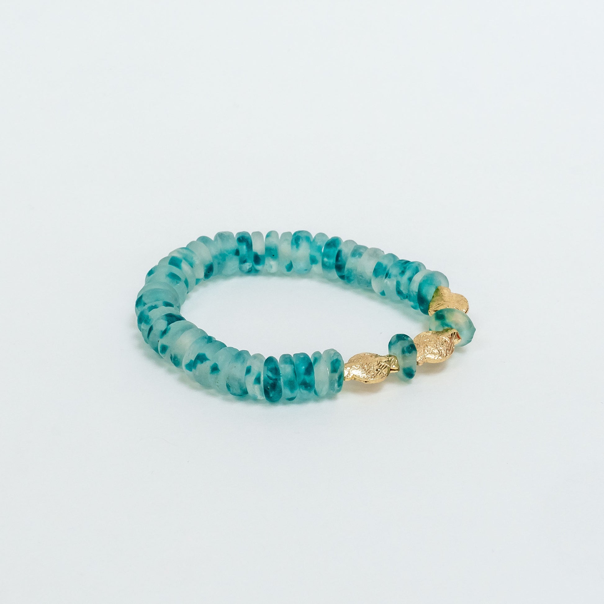 Beautiful blue and clear recycled glass beads globally sourced from Africa and hand-rolled by village woman.